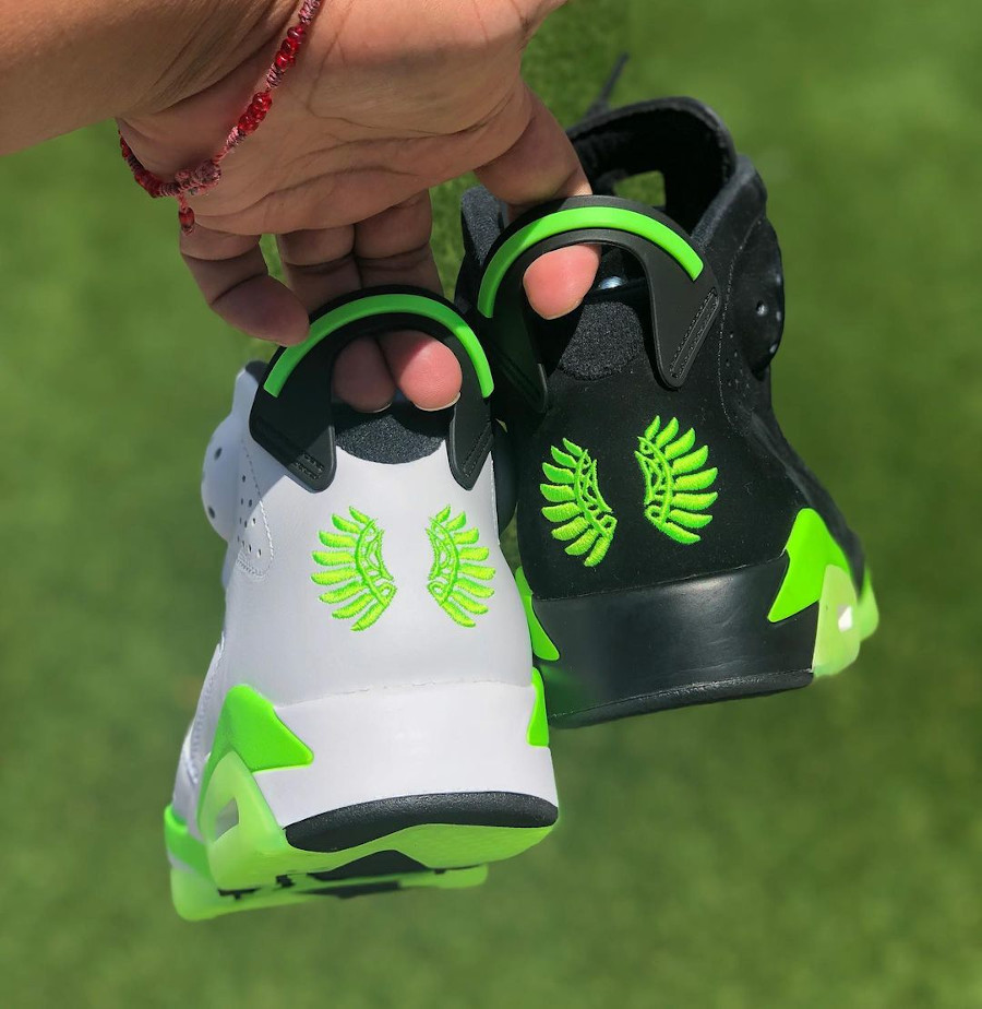 La AJ6 Electric Green s’inspire d’un modèle player exclusive. Lors de sa sortie, elle reçoit un accueil très positif. Le vert fluo à la place de l’infrarouge en fait une réinterprétation du mythique coloris original. Connaissez-vous l’existence de la Air Jordan 6 Retro PE White Oregon Ducks ? C’est exactement la même paire mais en cuir blanc. Les membres du club omnisports de l’université ayant un canard en guise de mascotte, sont les seuls à la posséder. Et pour quelques années encore.