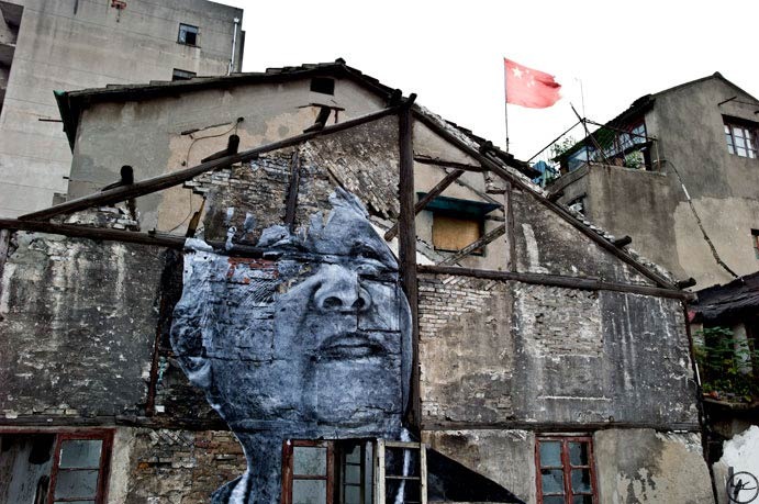 Quel projet audacieux que le « The Wrinkles of the City » de JR. L’artiste français propose un projet à l’échelle mondiale. L’idée est de représenter une personne âgée d’une ville choisie par JR. Elle doit être être détentrice de la mémoire du lieu en question. Ce projet me rappelle un proverbe africain qui dit que la disparition d’un vieux est semblable à une bibliothèque qui brûle…. Au delà de l’aspect philosophique de l’oeuvre de JR, je trouve ces photos (prise à Shanghai) magnifiques :