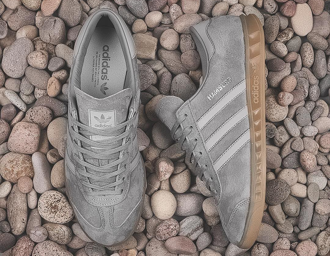 La Hamburg, modèle emblématique de la collection Adidas City Series, nous revient dans une version toute en finesse. Le classique est décliné en daim de porc gris. Un matériau qui fait ressortir le logo doré de la sneaker qui porte le nom de la ville portuaire allemande. Son design ne serait pas complet sans la semelle en gomme. En vente (99.95€) chez Adidas.fr : voir la paire et Zalando : voir la paire.