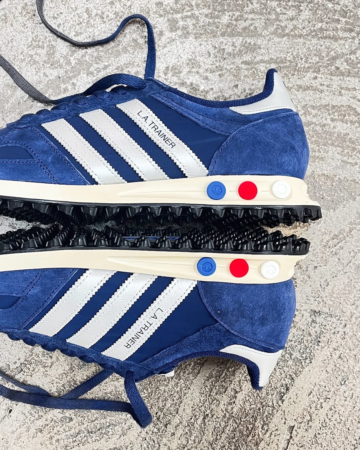 La adidas LA Trainer est une running des années 80 alors que la adidas Samba est issue du football indoor des années 50. Mais bon, les 2 sont des icônes de la culture terrace aujourd’hui.
