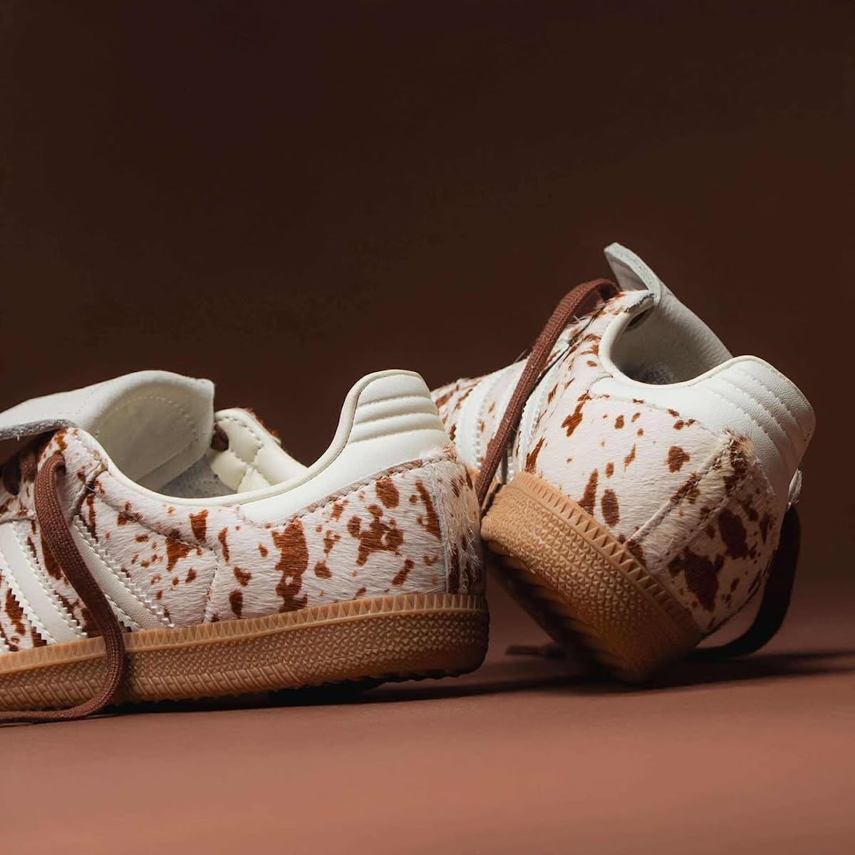 Ah, cette fameuse languette pliée de la version LT héritée du football ! Elle donne du caractère à la chaussure, c’est indéniable. Mais si vous faites partie de celles qui trouvent ça encombrant, bonne nouvelle : adidas propose aussi une Samba OG Cow Print plus classique. Et pour les vraies fans de rétro ? Il y a même une SL 72 Cow Print qui traîne dans les parages.