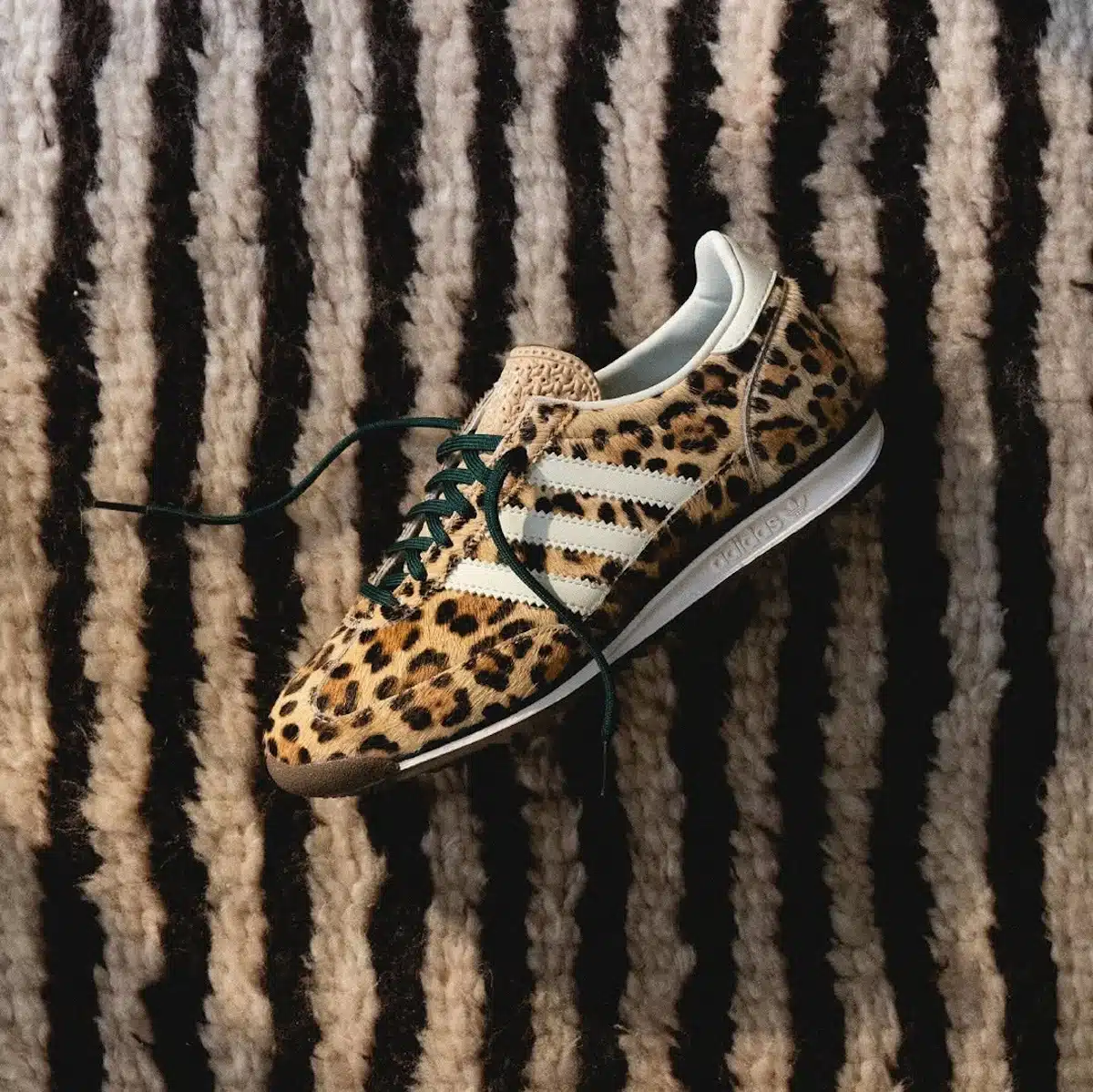 - La adidas SL 72 OG W Leo Magic Beige revisite l’icône olympique de 1972 avec un imprimé léopard