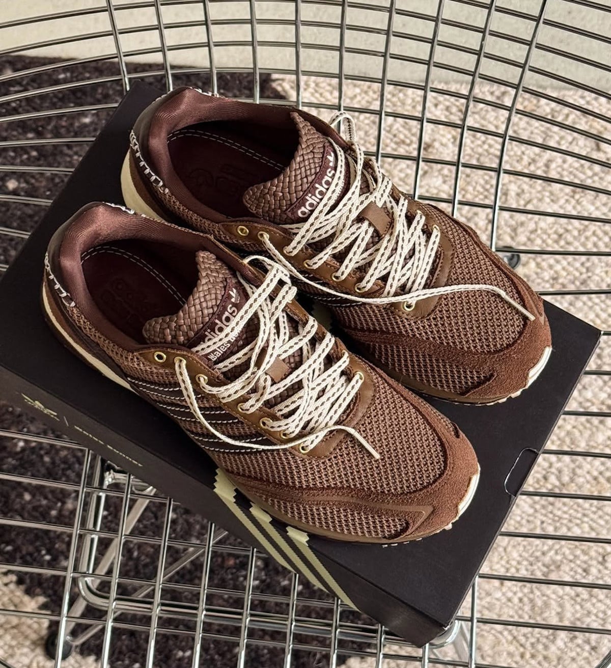 Après quelques saisons à explorer le daim, le satin, les sequins et autres matériaux, Bonner revient aux textures fortes pour l’été 2026. Deux adidas Gazelle Indoor, une en snakeskin, une en poney hair, plus une adidas Karintha Basketry tissée main au Brésil à 600 euros. Ainsi que 2 adidas Karintha OG. La texture n’est plus seulement décorative ici. Elle devient l’argument principal de valeur. C’est le cuir tressé artisanal qui justifie le prix, pas le logo.