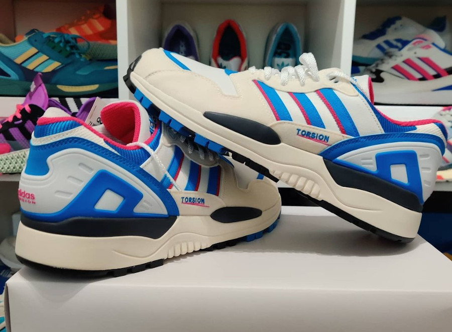 Un modèle constitue le chaînon manquant entre les gammes ZX et Torsion. Sauf que la marque bavaroise ne l’a jamais sorti. Elle a gardé jalousement le prototype dans ses archives pendant de longues années. Jacques Chassaing est une des rares personne au monde à connaître son existence. La marque aux 3 bandes estime qu’il est grand temps de lever le voile sur ce sample. La Adidas ZX 0000 Evolution AZX 2021 ‘Crystal White’ entre en scène. L’édition limitée ne ressemble à aucune chaussure du programme. L’élément le plus édifiant est sa semelle. Celle-ci n’expose pas de fente comme cela est le cas pour les ZX 6000, 7000, 8000, 9000 ou 10000. Quant à son combo, son mélange de bleu et de rose fait penser aux Torsion Integral S et Ultra Tech. Voilà un autre atout non négligeable. En vente au prix de 130€ le mercredi 5 mai sur l’appli Adidas Confirmed (à 10 heures) : voir la paire.