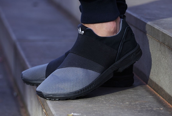 Parmi les multitudes de ZX Flux, il y a la Slip On, une version sans lacets de la running. Ils sont remplacés par une bride élastique si bien qu’elle s’enfile comme un chausson.