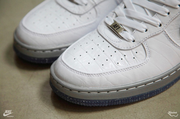 Plusieurs parties de la basket évoque le cosmos. L’effet holographique du Swoosh est bluffant. La lanière et la semelle intermédiaire ont été fabriquées avec du 3M, un matériau qui réfléchit la lumière. Le cuir de l’empeigne dispose d’un imprimé façon crocodile.