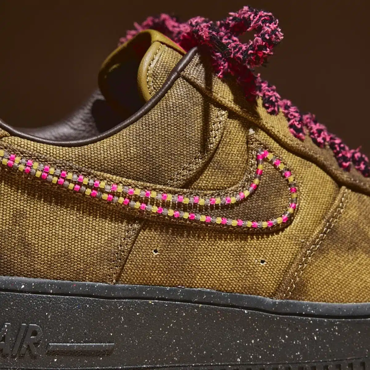 - Nike remplace le cuir traditionnel par un canvas texturé vieilli pour un rendu artisanal inédit.