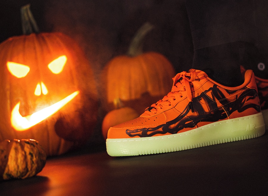 Depuis la Skeletal Force, Halloween est synonyme d’AF1 avec un imprimé d’os de squelette. La citrouille Jack O’Lantern, revient hanter nos nuits. La Nike Air Force 1 ’07 QS Orange Skeleton 2020 est la sneaker dont vous avez besoin afin de faire sensation lors votre soirée déguisement du samedi 31 octobre. Des 3 coloris existants, la chaussure s’avère définitivement la plus halloweenesque. A l’instar de ses prédécesseures, la chaussure en cuir dispose d’une semelle phosphorescente. A l’apparition de l’obscurité, la lumière verte de la Air Force One Glow in the Dark terrifiera vos convives. En vente au prix de 130€ le mercredi 28 octobre au Nike Store.fr (à 9 heures) : voir la paire.