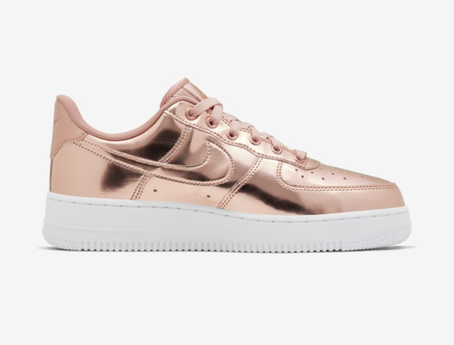 La bataille des sneakers qui brillent revient à chaque fin d’année. Nike entend bien éclipser la concurrence. Afin d’atteindre cet objectif, la firme de Beaverton nous délivre un nouveau volet de son pack Liquid Metal, introduit en 2013. La Air Max 1 Liquid Gold (notamment portée par Beyoncé) et les Nike Lunar Force 1 High avaient fait sensation au moment de leur sortie. L’éclat des chaussures est tel qu’elles semblent avoir été baignées dans un moule rempli de métal en fusion. La collection 2019 se focalise sur la Air Force 1 Low qui se décline en 3 éditions limitées : Metallic Bronze, Silver et Gold. La AF1 couleur cuivre lance les hostilités. Soyez à l’affût car il n’y en aura pas pour tout le monde.