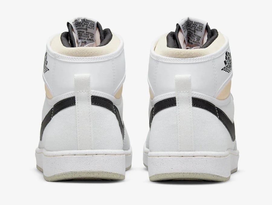 Revenons à notre sneaker en canvas. Sa partie supérieure est constituée de toile grise et blanche. Ces nuances claires assurent une mise en valeur optimale du Swoosh en cuir noir. La basket minimaliste se sert d’une semelle couverte de petites taches. L’outsole beige crème est-elle en Crater ? Rien ne semble l’indiquer. En effet, le logo Move to Zero ne figure nulle part.