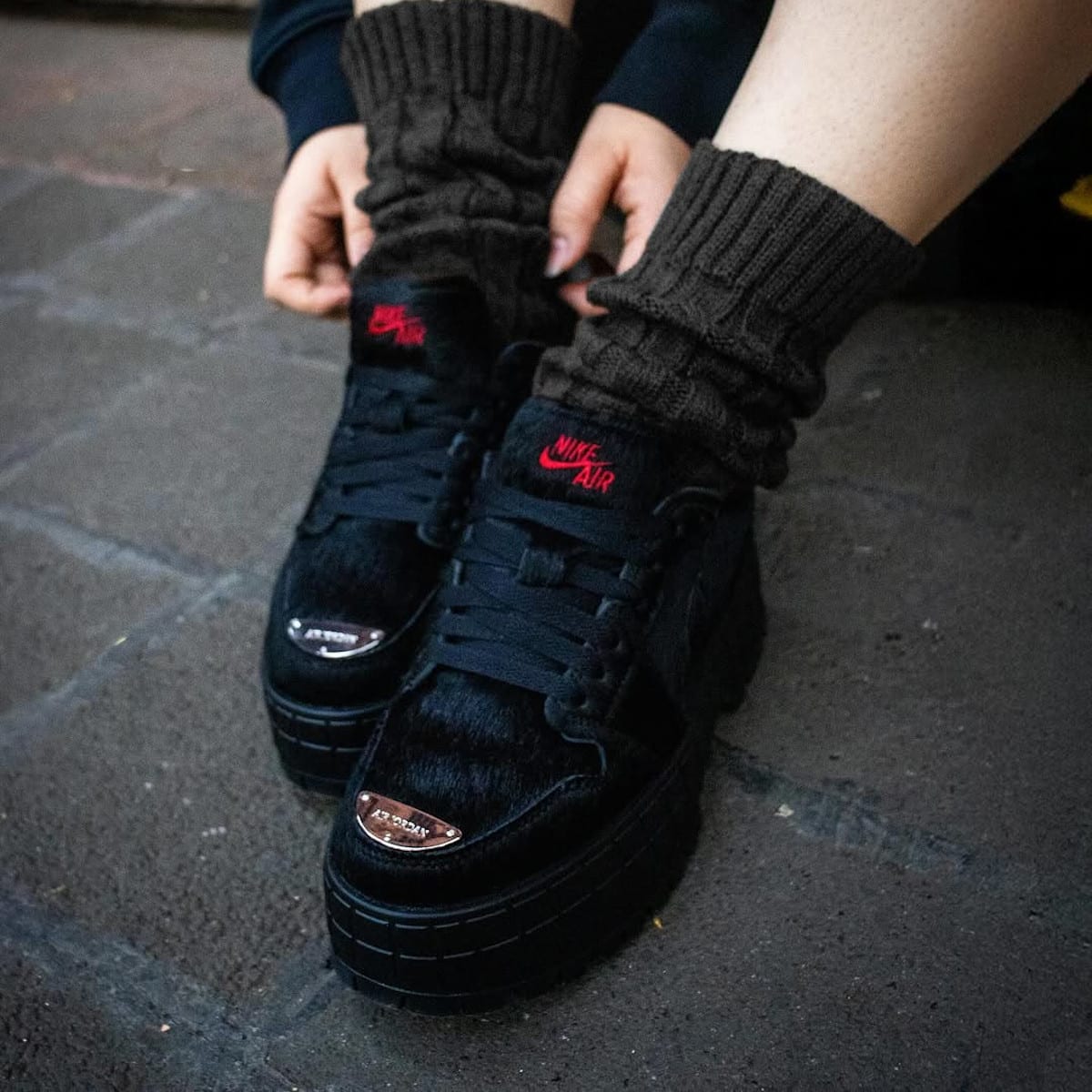 Les sneakers à semelle compensée sont de retour. Et Jordan Brand entre dans la danse. La Air Jordan 1 Brooklyn Low Black Pony ouvre le bal. Premier coloris de cette nouvelle déclinaison féminine, elle s’inspire des chaussures creepers. Vous voyez ces modèles aux semelles épaisses prisés des punks et gothiques ? Voilà l’esprit. Avec sa grosse semelle oversize, elle rappelle la Fenty x Puma Cleated Creeper imaginée par Rihanna. Mais ici, Jordan joue la carte du métal. Un embout brillant à l’avant, un logo Wings chromé à l’arrière, et voilà une Jordan 1 qui ne fait pas dans la dentelle. Le reste suit la même énergie : du poil noir façon crin de poney sur l’empeigne, une silhouette basse et imposante. Luxe et rebelle, c’est ainsi que se définit la AJ1 Brooklyn. Comme si une Jordan 1 et une Creeper avaient fusionné dans un club underground. Son style punk assumé, ne laissera personne indifférent.