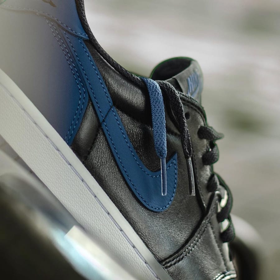 La Air Jordan 1 Low OG Mystic Navy s’adresse en premier lieu aux amoureux du modèle de 1985. Encore plus qu’une Bleached Coral. Ces derniers percevront en ce coloris estival un remake de la AJ1 Retro Low Black Royal Blue (2015). Le comparatif réalisé par CASVAL qui a mis les 2 sneakers côte à côte s’avère criant de vérité. Les chaussures sont identiques (le cuir noir, le Swoosh, la toe box, le logo Wings…) en tous points à un détail près. La nouvelle jordan One s’éloigne du bleu marine pour aller vers une nuance plus pâle. La marque au Jumpman va continuer à choyer les inconditionnels de la première signature shoe de Michael Jordan. Une autre réinterprétation d’un colorway original est dans les tuyaux. Il s’agit d’une UNC inédite. La date de lancement française reste à déterminer.