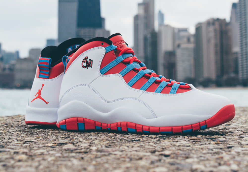 La première collection Jordan 10 ‘City’ a fait irruption en 1995. 21 ans plus tard, la marque au Jumpman nous en offre une nouvelle. Fort logiquement, Chicago la ville dans laquelle His Airness émergea, dispose d’une basket à son effigie (à voir aussi Air Jordan 10 Retro ‘Rio’). Ses couleurs ne sont pas celles de Spiderman mais du drapeau municipal de The Windy City également surnommé « Chi » d’où la broderie. En vente (190 euros) au Nike Store.fr : voir la paire.