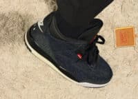 Tu es plutôt team Denim Blue ou Denim Black ? Moi, j’ai choisi mon clan. Je vote pour la AJ3 en jeans noir, la moins sexy des 2. La version bleue parle à un inconditionnel du 501 brut et plus encore. L’autre coloris respire la Air Jordan III OG Black Cement, ce qui est un argument décisif pour tout fan du modèle de 1988 qui se respecte. Du denim noir remplace juste l’imprimé éléphant. Grâce à ça, je la perçois comme une édition alternative du coloris OG. Elle vaut largement le billet de un dollar imprimé sur la semelle intérieure.