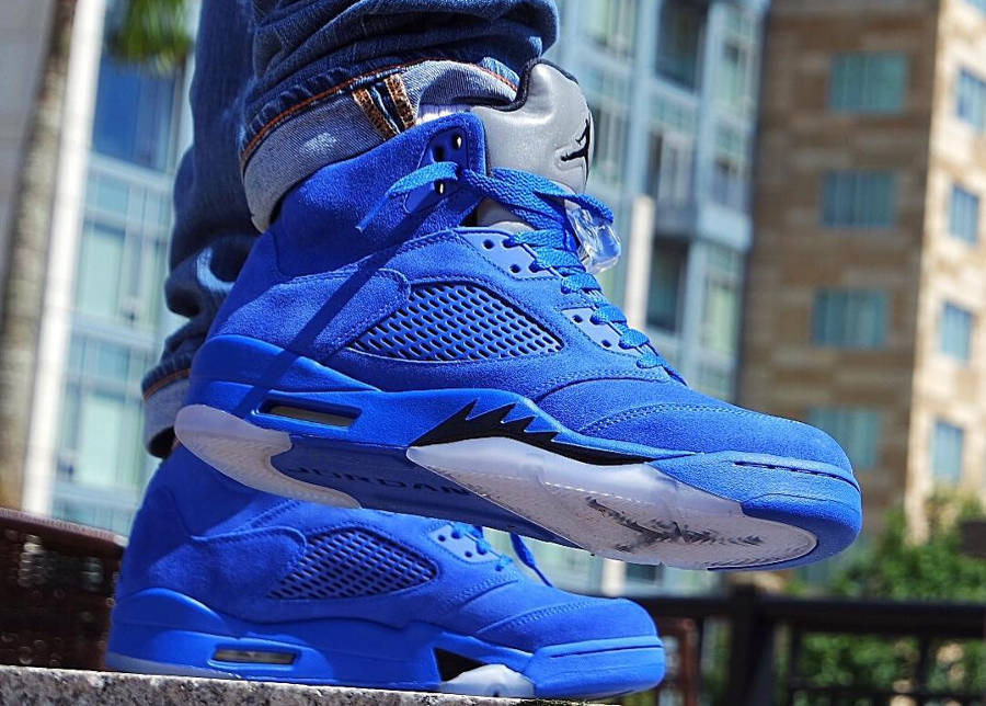 La Air Jordan 5 Retro ‘Blue Suede’ clôture le pack Flight Suit qui renoue avec les origines militaires de la basket de 1990. Après une Dark Stucco de haut vol, Jordan Brand nous délivre une paire utilisant un daim bleu. La languette couleur argent ainsi que les dents requin noires de la semelle intermédiaire génèrent un contraste électrique. Une alternative intéressante à la Air Jordan 6 Pinnacle ‘Jacket’ qui n’est pas à la portée de toutes les bourses. Disponible (prix : 190€ & 140€) le samedi 30 septembre au Nike Store.fr (à 9 heures).