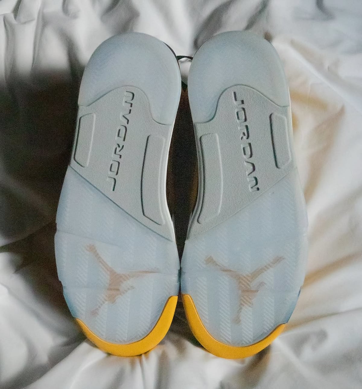 Jordan Brand respecte globalement l’original. Mais glisse une subtilité que seuls les vrais connaisseurs remarqueront. Le bout de la semelle extérieure passe du noir au jaune. Un changement qui reprend le design des échantillons de 2011, ces fameux samples jamais arrivés en boutique.