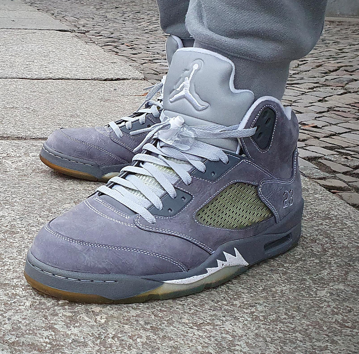 Symboliquement, cette teinte repositionne entièrement la Jordan 5. Là où les OG parlaient de victoire et d’intensité, le Wolf Grey parle d’élégance feutrée. Elle est au modèle de 1990 ce que la Cool Grey est à la Jordan 4. C’est le quiet luxury avant que le terme existe. La paire de celui qui a construit son vestiaire sans esbroufe, et sans chercher la validation des autres.