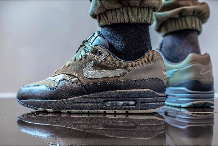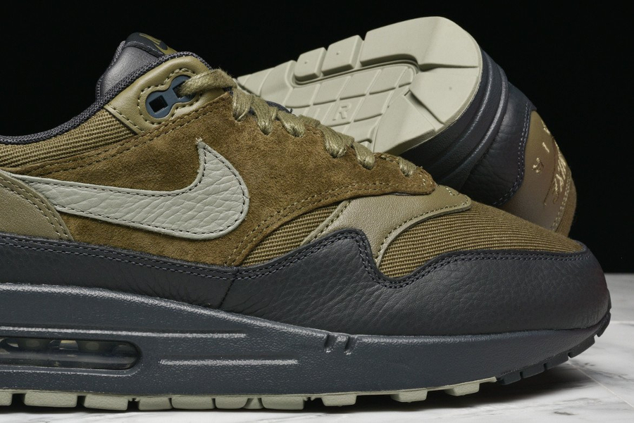 La première impression en voyant la ‘Medium Olive‘ ? Elle renvoie à l’âge d’or de la Air Max 1. Avec un shape en béton et son combo fulgurant, le modèle premium n’a pas à rougir devant les AM1 du début des années 2000.