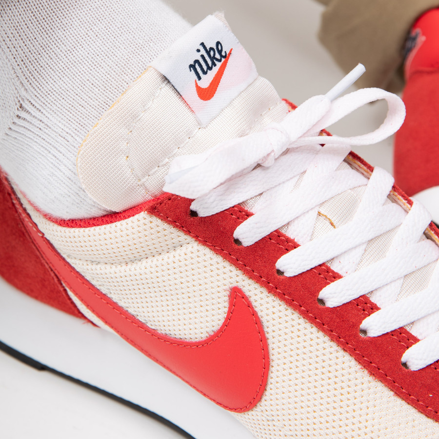 Le dernier arrivage de la Nike Air Tailwind 79 comporte une sneaker bien pimentée. La sneaker qui a effectué ses débuts lors d’un marathon à Honolulu revêt du mesh blanc cassé, du suède et du cuir rouges. Vous constaterez que le Swoosh et le daim ont une nuance écarlate légèrement différente. Enfin, cette Nike Air Tailwind 79 Sail Track Red White Habanero Red possède un logo des années 70 à son talon. Un détail qui fera mouche chez les amoureux des Nike vintage. En vente au prix de 90€ au Nike Store.fr : voir la paire.