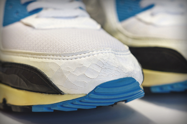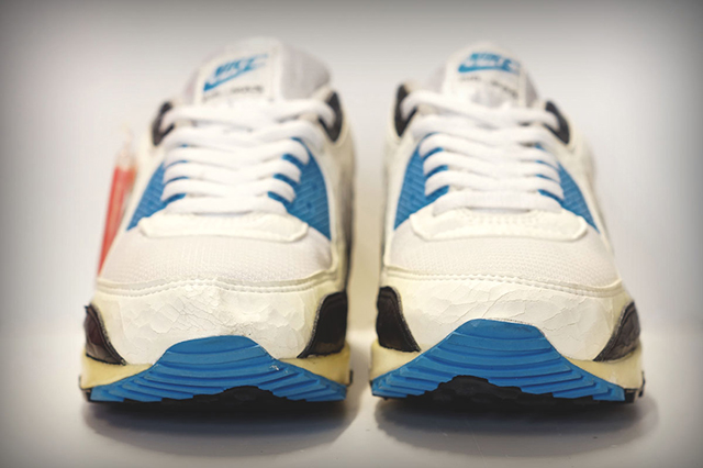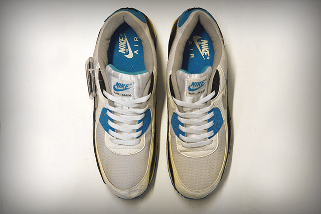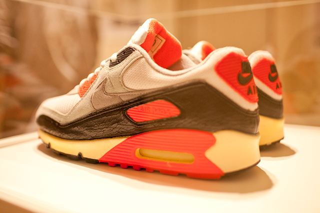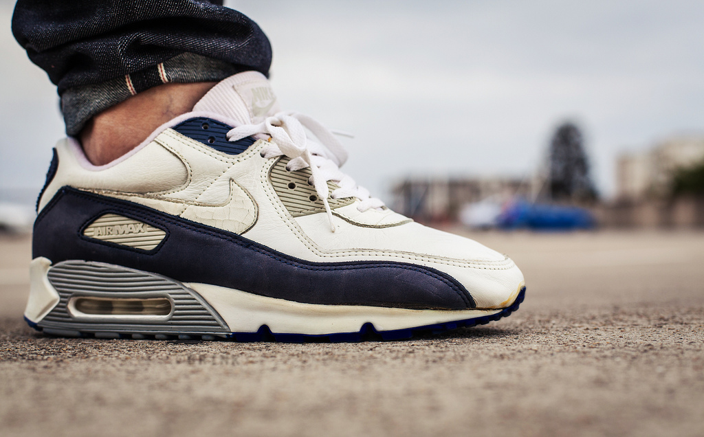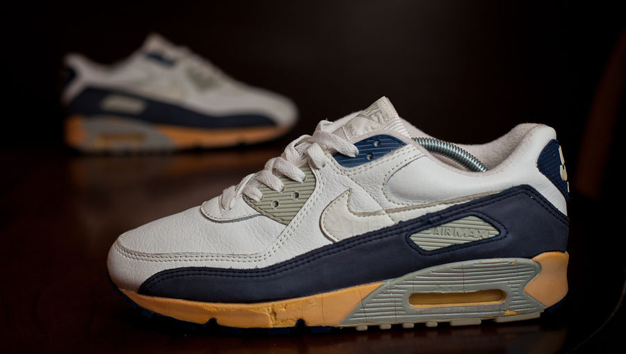 En 1987, une révolution a lieu. Tinker Hatfield, architecte de formation, conçoit la Air Max 1, une des plus belles running de tous les temps. 3 ans plus tard, le savant fou de la marque au Swoosh récidive. La Air Max III (rebaptisée Air Max 90 en 2000) arrive telle une onde de choc. La running qui succède à la Air Max II (la Air Max Light…), sort la même année que la Air Jordan 5, une autre création de Tinker Hatfield. Encore une fois, il réussit la prouesse de mettre au point une running qui associe performance et élégance. Plus connue aujourd’hui sous le nom ‘Infrared’, le premier coloris s’appelle alors ‘Radient Red’. A cette époque, Nike ne multiplie pas à outrance les déclinaisons de la running. Toujours en 1990, sort les éditions Laser Blue ainsi que 2 versions pour femme : Concord et Hot Coral/Crystal. La Spruce/Hot Lime, que beaucoup de fans considèrent comme un « coloris OG » sort en 1991. Les premières Air Max 90 sont fabriquées en Corée. Le modèle trouve un ambassadeur de choix en la personne de George Bush. La marque au Swoosh créé pour le président des Etats-Unis une paire aux accents patriotiques, la Air Max 90 ‘Air Pres’. Après la période faste, vient la disette. La traversée du désert pour les aficionados de la Infrared dure 12 ans. L’oasis est aperçue en 2002. Pour la première fois, Nike réédite la Air Max 90 Infrared. Elle atteint son apogée en 2005 avec la version du pack HOA (History Of Air). Jusqu’à aujourd’hui, les spécialistes la considèrent comme la meilleure réédition (sa forme, les matériaux) de la Air Max 90 Infrared.