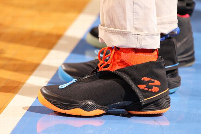Spike Lee entretien des rapports étroits avec la marque au Jumpman. La présence du réalisateur à la présentation de la Air Jordan XX8 n’est pas passée inaperçue. Lors d’un match des New York Knicks, il arborait fièrement une paire aux couleurs de son équipe de prédilection. A quand une sortie ? Mon petit doigt me dit qu’elle va arriver en 2013.
