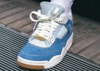 A quand une nouvelle collaboration avec Levi’s ? C’est pas pour tout de suite. Imaginez vous un peu cette Air Jordan 1 High OG Stonewashed Denim Worn Blue Metallic Gold avec une étiquette Levi Strauss & Co et un Red Tab de 501. Sa sortie provoquerait des émeutes. Plus sérieusement, la Wmns Air Jordan 1 Retro présente un design très solide. Le mariage entre le jeans délavé bleu clair et le cuir blanc prend bien. Le deubré revêt la forme d’un bijou doré : un Jumpman à l’intérieur de tiges de bambou. Un hangtag en denim portant la mention Nike Air en rouge accompagne l’édition spéciale. Jordan Brand prend énormément soin de sa collection AJ1 2022 pour femme. Entre la Bubblegum, la Varsity Red et maintenant la Worn Blue, la gente féminine a le choix des armes.