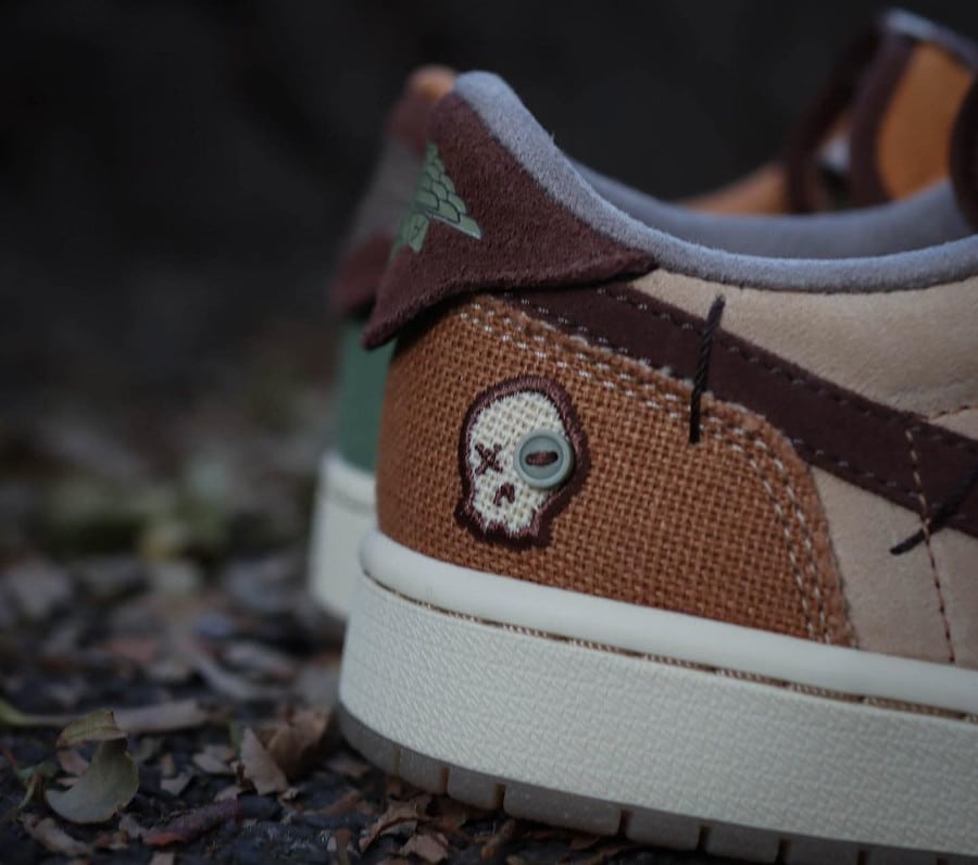 La première signature shoe de Michael Jordan finit le mois en beauté. La Flax and Oil Green est la seconde grosse release après la réédition de la OG Chicago. Le thème du vaudouisme obsède Zion Williamson. Le joueur des Pelicans de La Nouvelle-Orléans étant originaire de la Caroline du Sud, cela n’a rien de surprenant. L’essentiel reste ailleurs. La Air Jordan 1 Low Retro OG Voodoo est tout simplement envoûtante. Inutile de palabrer. L’édition spéciale entre au panthéon des Nike Halloween aux côtés Air Force 1 Low Frankenstein, Off White x Nike Blazer Mid Spooky Pack (Grim Reaper & Hallow’s Eve) et Nike Dunk Low SB Freddy Krueger. La AJ1 mismatched reprend les mêmes ingrédients que la Jordan Zion 2. La chaussure se compose de daim et surtout de toile de jute multicolore. Ce matériau évoque la poupée vaudou. La tête de mort brodée lève les doutes quant à l’inspiration. Le toe box prend l’apparence d’un cimetière. Les petites croix la foutent les jetons. Les zombies rodent dans les parages. D’autres éléments originaux méritent d’être mentionnés à l’image du Wings, du mini-Swoosh et du Nike Air à l’envers ou des semelles intérieures dépareillées. Les lacets en forme de corde achèvent de nous convaincre.