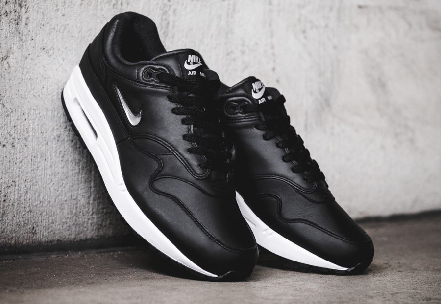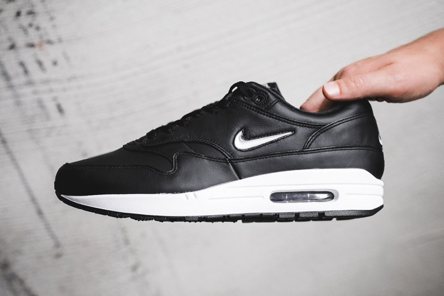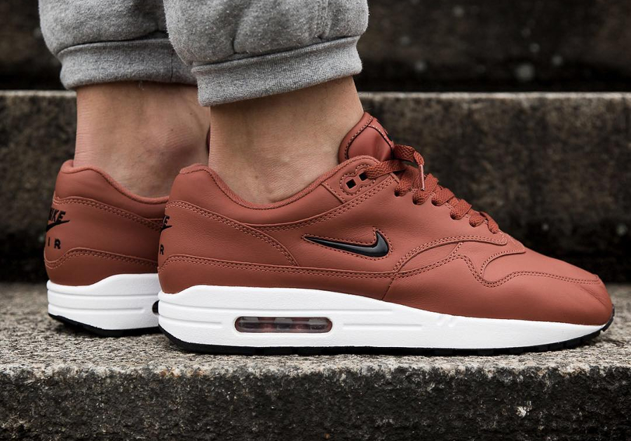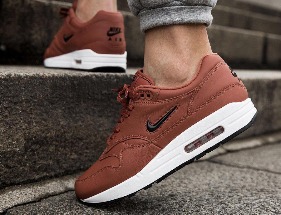 Pourquoi la Air Max 1 Premium SC est-elle addictive ? C’est un peu comme lorsque vous achetez une pierre précieuse. L’acquisition d’une en appelle d’autres afin d’avoir une collection riche en couleurs. Une belle variété de mini-Swoosh ayant l’allure de joyaux commence à être disponible: bleu ciel pour la University Blue, rouge pour la Rare Ruby… Qu’en est-il pour les dernières AM1 Jewel ? La Dusty Peach constitue une exception. On retient davantage la couleur de son cuir, saumon foncé en l’occurrence, que son petit logo Nike en relief. C’est tout l’inverse de la Black Leather qui se distingue par son mini-Swoosh argenté qu’aucun modèle sorti jusqu’à présent ne possède. Un détail qui fait de ce colorway un petit bijou. En vente (prix : 140€) au Nike Store.fr.