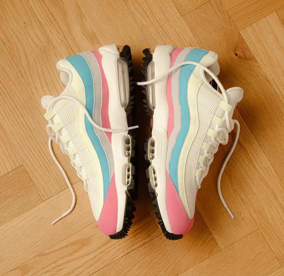 Certains détails trahissent son origine. Ces éléments peuvent gêner sur bitume dur. L’usure risque d’être plus rapide qu’avec une semelle standard. Mais une solution existe. Le soleswap règle ce problème. Il suffit de remplacer la semelle avec des crampons par une semelle d’Air Max 95 OG Big Bubble classique. L’opération reste accessible pour un bon customiseur. Cette modularité change tout. Elle transforme une chaussure de niche en véritable option lifestyle.