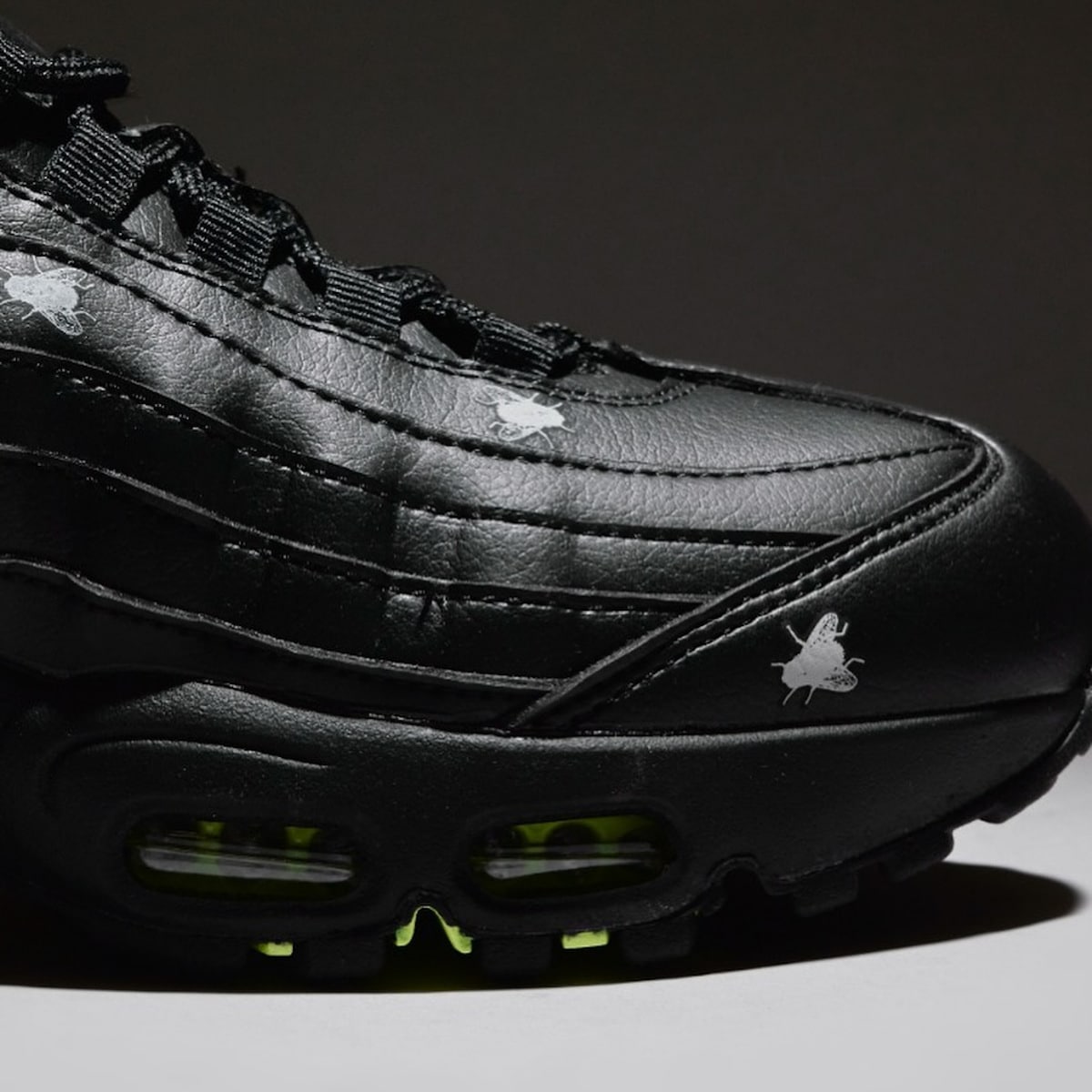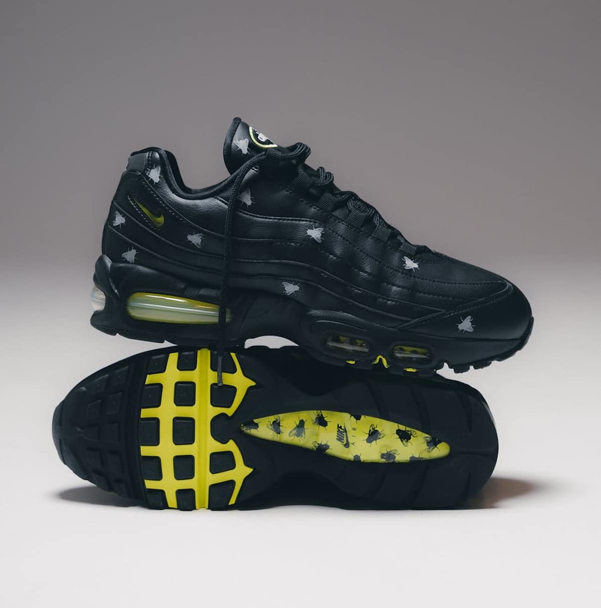 La Nike Air Max 95 Houseflies arrive le 24 octobre, juste avant que des gamins déguisés en Spiderman viennent sonner chez vous. Le concept ? Une base en cuir noir, des bulles d’air jaune fluo (un hommage à la OG Neon) qui agressent votre rétine, et des dizaines de mouches blanches imprimées partout. En 3M, hein. Parce qu’une mouche normale, c’est pas assez. Il faut qu’elle brille.