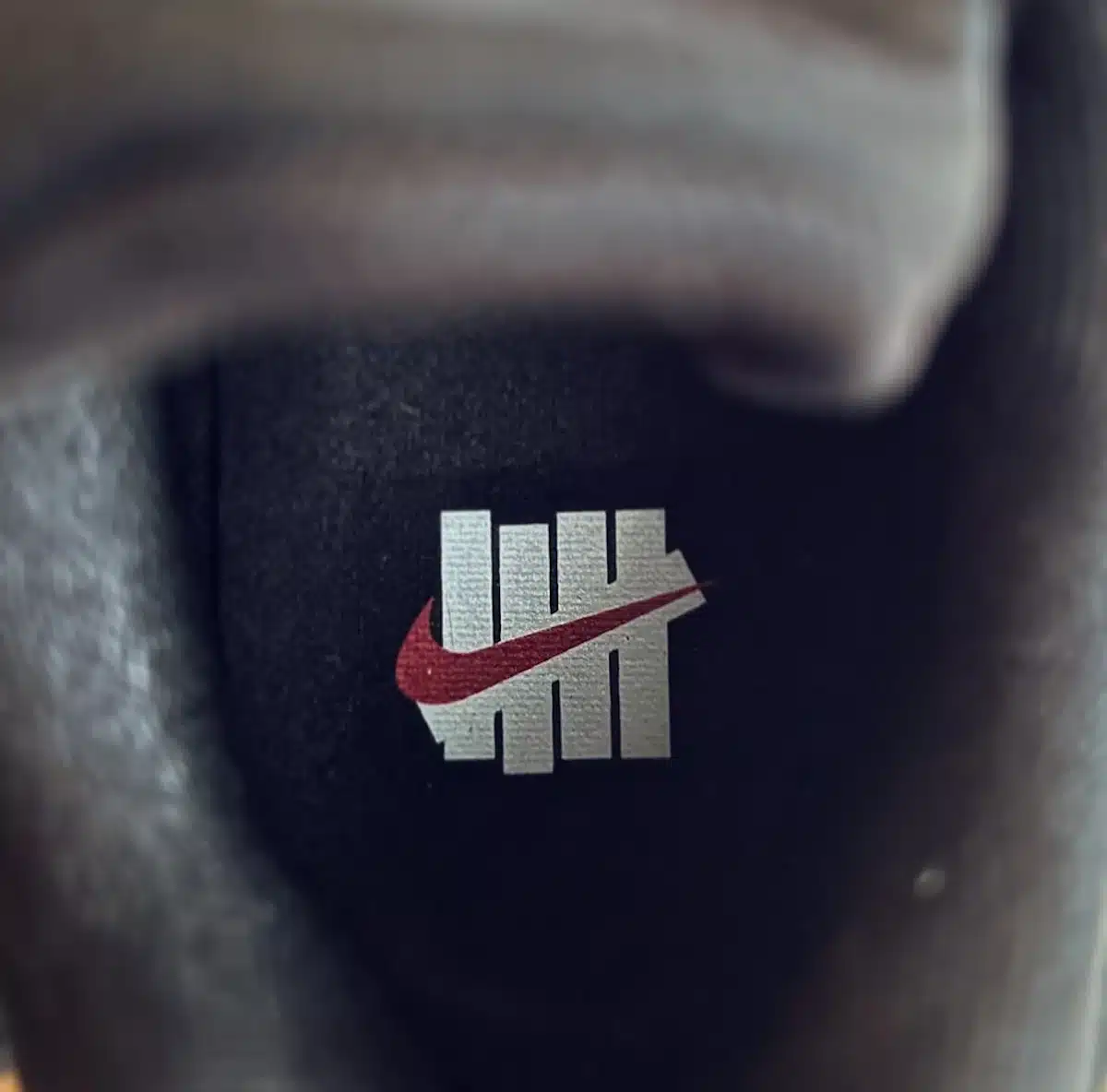 Les rayures squattent les panneaux latéraux. Une bande verte avec une autre rouge avec le branding UNDFTD qui se répète à l’infini. Le Mini Swoosh argentés près du col apporte de l’éclat. Le lace toggle métallique attire l’œil. Les Big Bubble sont toutes noires en finition matte.