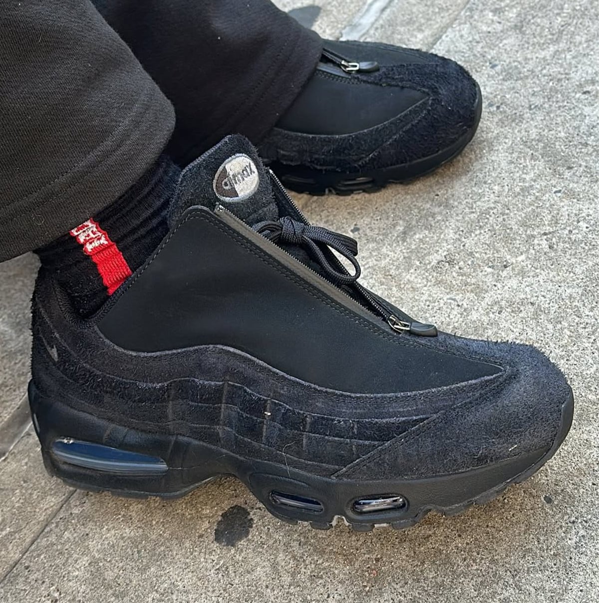 Vous connaissez l’histoire. 2001, Nike pète les plombs. L’Alpha Project balance des fermetures éclair sur tout ce qui bouge. Air Max Sunder, Craze, et puis cette Air Max 95 Zippée très vite oubliée. Personne n’en veut à l’époque. Trop bizarre, trop en avance sur son temps. 24 ans après, elle revient. En noir intégral. En suède double texture. Avec les Big Bubble version 2025.