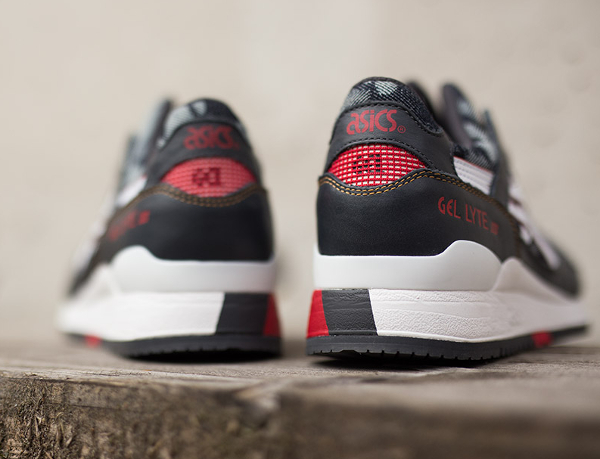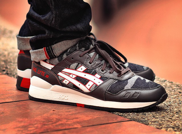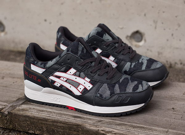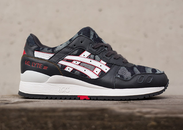 Ce matériau est associé avec du cuir. On le trouve à différents endroits de la running : toe box, base, col, languette. Le motif camouflage est du plus bel effet. La Asics Gel Lyte 3 ‘Japanese Denim’ est en vente (155 euros) chez Size? : voir la paire.
