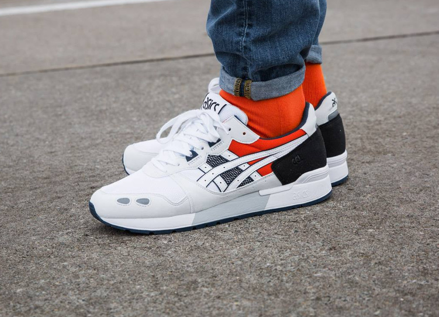 La Asics Gel Lyte OG devient peu à peu incontournable. Au fil des semaines, la running de 1987 prend du galon. En février, la 36 Views a mis en lumière les courbes de la fausse jumelle du modèle signé Mitsui San. Elle enchaîne avec la Asics Gel Lyte White/White du pack Sport qui revisite la palette de son coloris original. Néanmoins, la recette change et d’autres ingrédients viennent lui donner une saveur différente. Aux touches d’orange s’ajoutent des détails bleu foncé (oeillets, semelle d’usure). Sa toe box et son talon ne sont pas en suède noir mais blanc. Un grillage au niveau du Tiger Stripe lui confère un peu plus relief. En vente au prix de 100€ chez Asics Tiger.