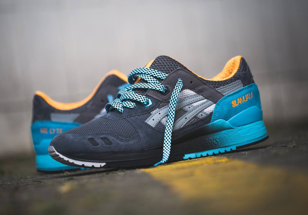 Slam Jam a sombré du côté obscur de la force. La Asics Gel Lyte 3 ‘6THPRLLL’ est le fruit de son nouveau projet avec la marque japonaise. Oubliez les couleurs vives de la ‘Buttercup‘. Place à la version sombre de la Asics Gel Lyte 3 ‘5th Dimension’ (2010). En vente (150€) le samedi 21 mai chez des boutiques comme Le Rayon Frais, Colette et Blackrainbow.