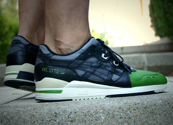 Les Asics Gel Lyte 3 customisées sont tellement rares que l’on peut pas passer à côté de la « Toxic Toe ». Son créateur, Benji Blunt, est connu pour son travail sur des New Balance et Adidas Superstar 80’s. Il a bossé à partir de la Ying Yang.