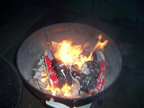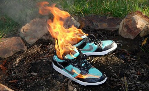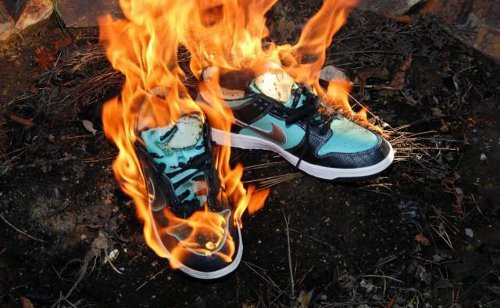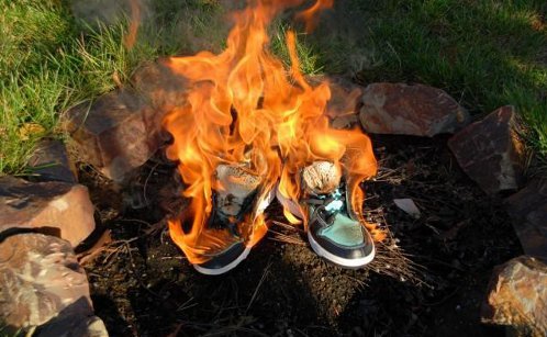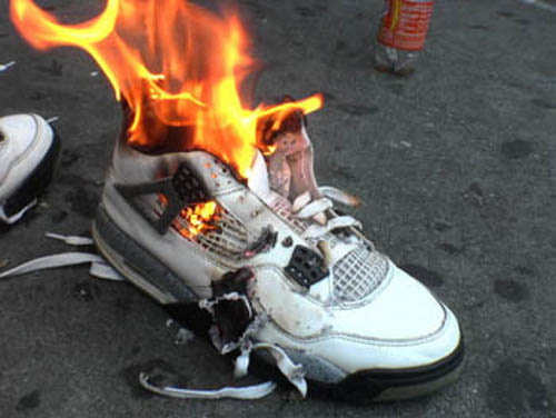 Quelle est la chose la plus odieuse aux yeux d’un sneaker addict ? La contrefaçon (fake). Certains extrémistes vont même jusqu’à organiser des autodafés de fausses sneakers : Des Nike Air Yeezy, Air Jordan IV et XI au bûché ! Je vous laisse admirer ces « cérémonies » en images :