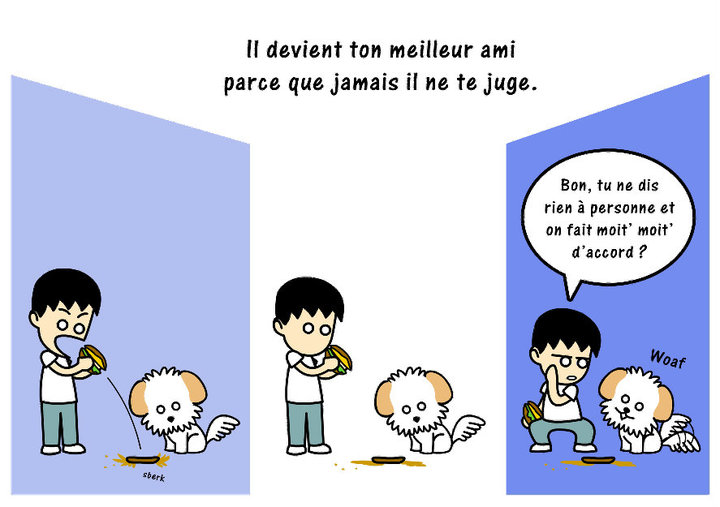 Comme chaque mercredi, je vous propose une bande dessinée réalisée par Shaolin Bledia de Demilune Studio. Cet épisode s’intitule : « Mon gardien- avoir un animal de compagnie, ça change la vie ». A la semaine prochaine pour la suite.