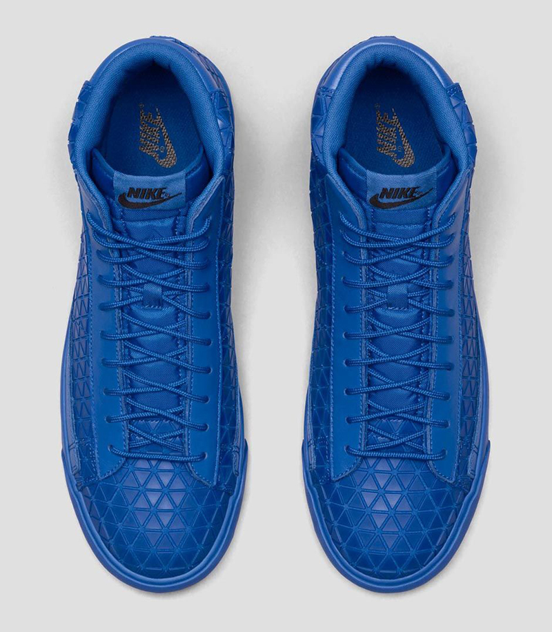 La Blazer Mid Metric ‘Royal Blue’, une paire dont le bleu rappelle celui de la Air Jordan 2 ‘Just Don’. Peut-être vous la fera-t-elle oublier ? Plaisanterie à part, cette sneaker est la seconde paire de la collection Metric. La première est sortie le mois dernier. Son empeigne en cuir gaufré laisse apparaître des motifs géométriques à savoir des triangles. Elle est en vente (105 euros) au Nike Store.fr : voir la paire.