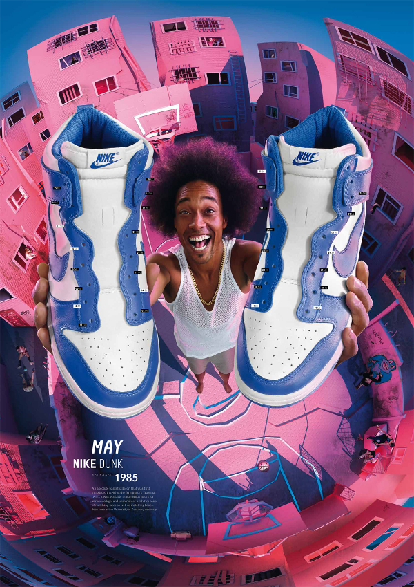 Ce calendrier qui met en scène des sneakers iconiques est l’oeuvre d’Asphaltgold. Le shop allemand a vu les choses en grand. Il a fait appel à des photographes de renom. Chacun d’entre-eux nous livre sa vision d’un modèle. Certaines photos sont époustouflantes.