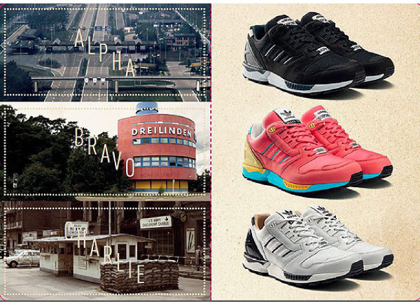 Il aurait préféré que le 9 novembre tombe un samedi, pour la sortie de son pack commémoratif. Chaque Adidas ZX8000 porte le nom d’un point de passage (Alpha, Bravo, Charlie). Les forces alliées françaises, américaines et britanniques présentent en Allemagne passaient par ces checkpoints pour rejoindre le centre de Berlin. Voilà des running qui nous font replonger dans l’histoire.