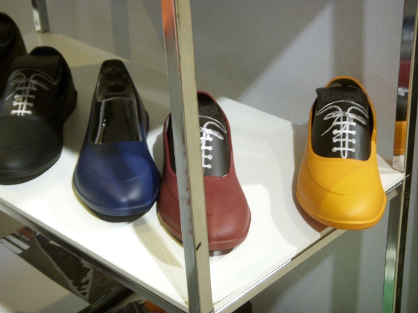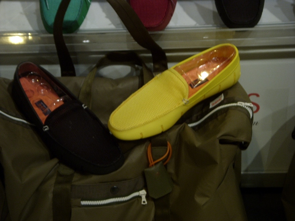 Swims est une marque norvégienne qui propose des chaussures adaptées au temps pluvieux.  Les semelles sont en polyuréthane, ce qui garantit une forte résistance à l’eau. En plus de ce détail, cette matière rend la chaussure très flexible.  Les petites barres horizontaes sur la semelle sont en mesh anti bactérien. La partie supérieure est en nylon.  Les chaussures Swims essaye de concilier confort, protection et esthétisme. Je vous laisse découvrir en images la collection Swims printemps été 2011.