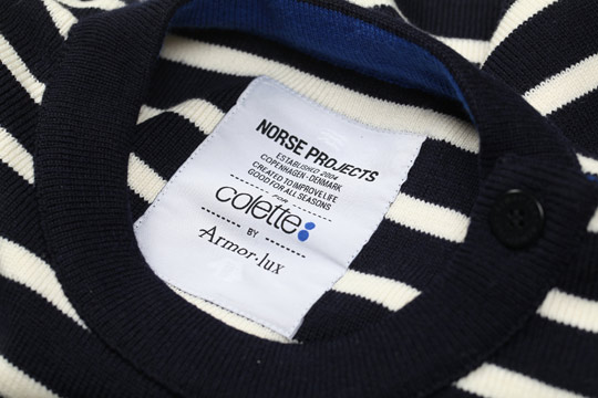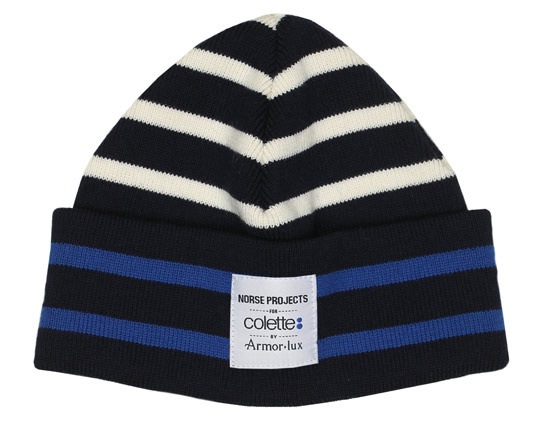 Que se passe t-il lorsque Colette, Norse Project et Amor Lux se rencontrent ? On obtient cette petite collection streetwear avec un petit accent breton. C’est pas original, non ? Elle comprend un caban, une écharpe, un bonnet et surtout deux pulls marins et une marinière. Pourquoi il y a -t-il autant de rayures sur ces vêtements ? Armor Lux est est une marque qui puise son inspiration dans l’univers de la mer. Quand vous êtes un marin, il s’agit d’un excellent moyen de signalisation. Je n’oublie pas de mentionner la « Colette touch ». La collection Colette x Norse Project par Amor Lux reprend les couleurs de l’enseigne. Vous pourrez la retrouver à partir du 3 décembre chez Colette.
