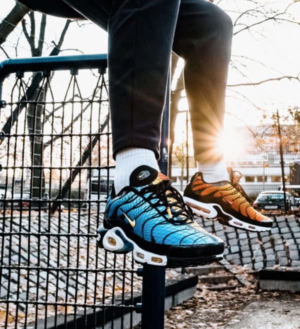 La célébration du 20ème anniversaire de la Air Max Plus atteint son point culminant. Vous vous souvenez des AM95 Greedy et AM1 Master ? C’est exactement la même approche. La Nike Air Max Plus OG Greedy décevra peut-être quelques inconditionnels de la Tuned 1. Avec les centaines de coloris sortis depuis 1998, il y avait autre chose à faire que de fusionner seulement les Requin Hyper Blue et Sunset ‘Orange Tiger’. Ensuite, de recouvrir l’édition spéciale du quadrillage des Air Max Plus Grid des années 2000. Malgré leur statut d’icône, résumer 20 ans d’histoire à ces 2 chaussures paraît assez réducteur. La Greedy est-elle un échec pour autant ? La pointe de déception subsiste mais le modèle 2 en 1 qui succède à la Nike TN Paris du mois de mars reste une belle basket. En vente au prix de 170€ au Nike Store.fr : voir la paire.