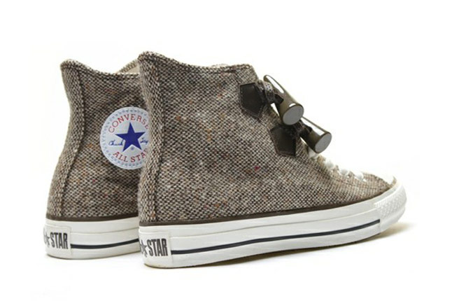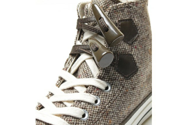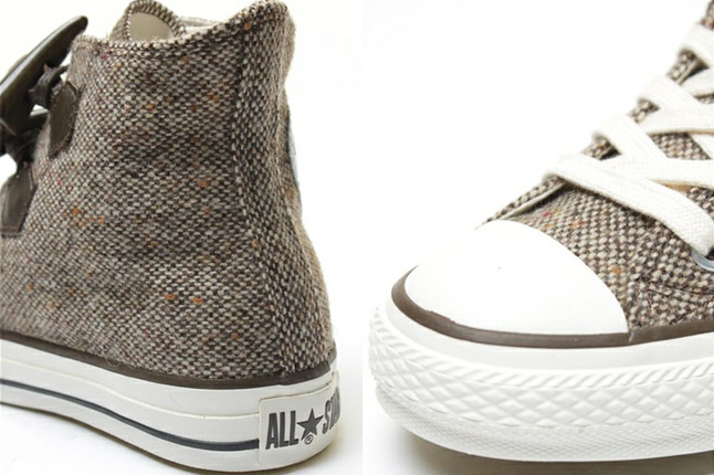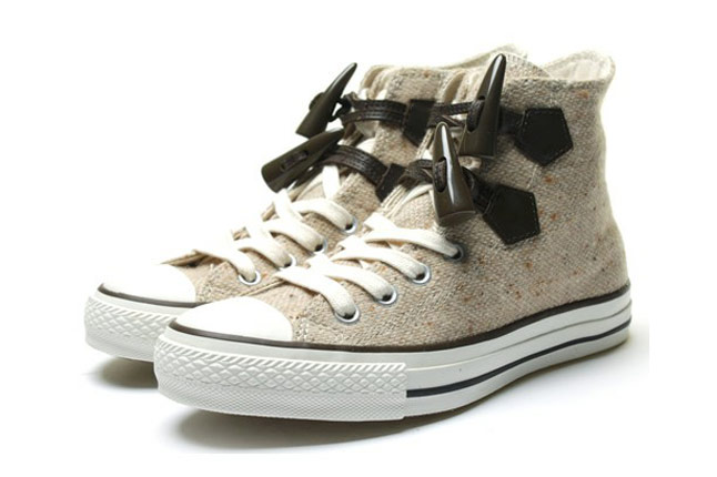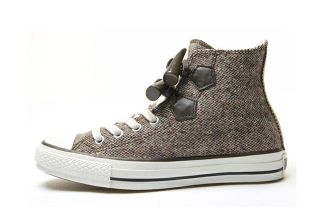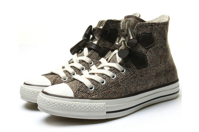 « Think global, act global », telle est la devise de la Converse ! La marque américaine propose des collections spécifiques en fonction des régions. Ainsi, vous trouverez au Japon des modèles Converse, introuvables en Europe (ce qui est loin de déplaire à ceux et celles qui sont à la recherche d’un style unique !). La Converse All Star Chuck Taylor « duffle Coat » m’a tapé dans l’œil ! Son design est atypique. La sneaker utilise des brandebourgs (les petits cônes incurvés de bois spécifiques au manteaux « duffle coat »). En plus de cela, la matière principale est le tweed (pour garder ses pieds bien au chaud cette hiver !). Deux coloris sont à votre disposition.