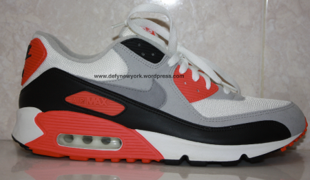 En 2010, la Air Max 90 fête ses 20 ans. Rien de plus normal que de faire une réédition de ce modèle. Oui mais, on avait déjà eu droit à une réédition en 2008, 2005 et 2003 ! Trop de réédition tue la réédition ! A ce rythme, ce modèle va finir par rentrer dans les rangs et devenir une paire de baskets comme les autres. Rien de plus banal ! Si vous faîtes un tour dans les boutiques, vous vous apercevrez que la Air Max 90 Infrared 2010 est toujours en stock. Elle a fait un vrai bide ! Une paire du calibre de la Air Max 90 Infrared devrait normalement s’écouler très rapidement. En plus, la 2010 est une édition limitée. Les gens sont loin d’êtres dupes. Je ne suis pas un sneakers âne-dict. Je ne parle même pas du prix (139 euros). Bref, le label rouge est entrain de s’effriter ou de rétrécir comme une peau de chagrin sui vous kiffez Balzac.