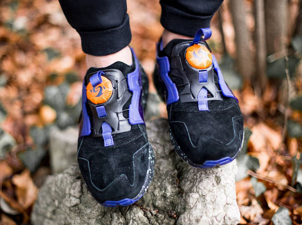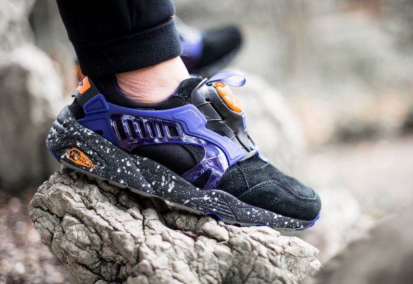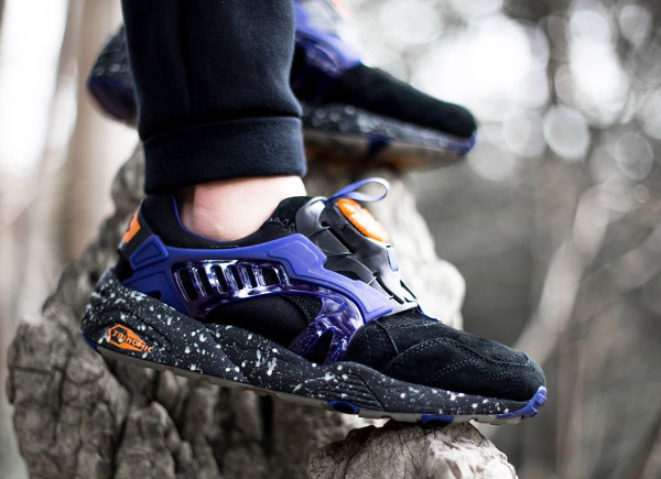 Avec le temps, Atmos Tokyo est devenu un label rouge. Les Air Max 1 (Leopard, Elephant, Safari) créées par boutique tokyoite se classent parmi les plus belles paires de l’histoire de la sneaker. On est forcément plus attentif lorsqu’elle est impliquée dans un projet. Sa dernière création est une Puma Disc Blaze. Les accents sombres font référence à la tombée de la nuit tandis que les touches orange représentent le soleil. La running possède une semelle glow in the dark.