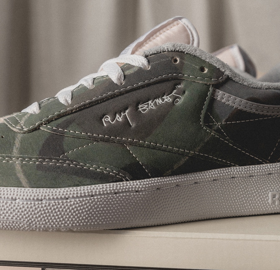 Ray Eames n’excellait-elle uniquement dans le design ? C’est ce que la Reebok Club C Dot Pattern pourrait laisser croire. La femme de l’architecte Charles Eames s’intéressait aussi à l’art. L’expressionnisme abstrait la captivait. En 1939, cette dernière organisa même une exposition. La Reebok Club C 85 x Eames Composition s’inspire d’une peinture à huile réalisée 2 ans plus tard. L’oeuvre que l’on peut admirer au musée de Colombus habille toute la tige de la chaussure en daim. L’édition spéciale à l’opposé des baskets du pack White & Black est sans aucun doute la sneaker la plus spectaculaire de la collaboration. Le rendu s’avère impeccable.
