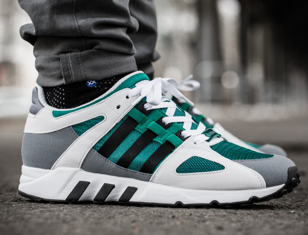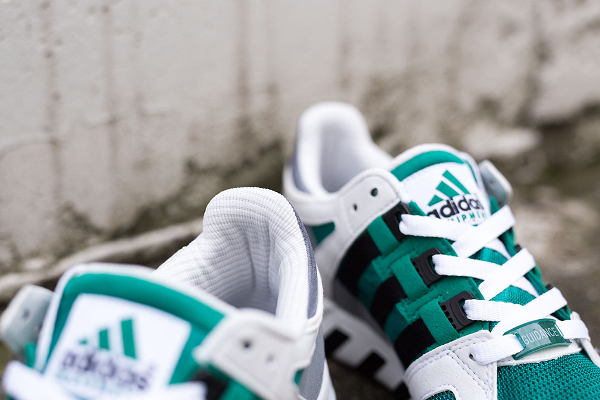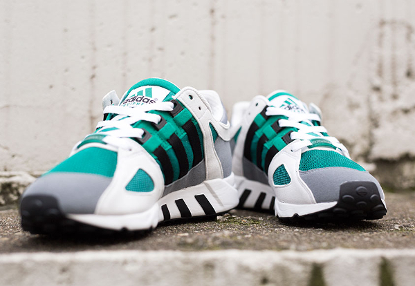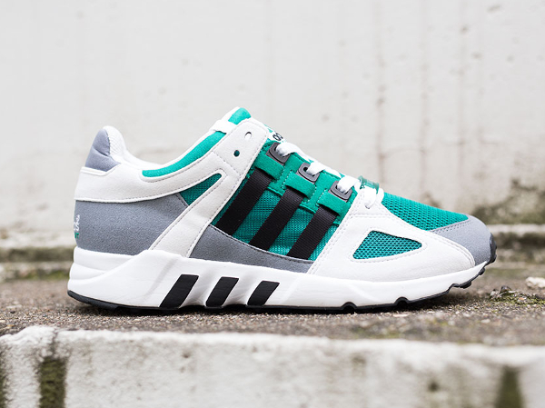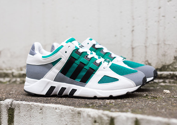 Le combo noir/gris/vert, c’est la marque de fabrique d’Adidas. Plusieurs running de la griffe allemande l’utilisent : Equipment Support, EQT Support 93, Cushion 91. La Guidance 93, une silhouette qui a refait surface l’année dernière, n’est pas en reste. Le combo est parfaitement adapté à sa structure. En fouillant dans les vieux catalogues d’Adidas, on s’aperçoit que cette paire est sortie pour la première fois en 1994.