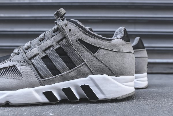 A quand une Adidas EQT Guidance 93 2.0 ? La Adidas EQT Support 93 a récemment bénéficié d’une cure de jouvence. La Guidance n’a pas eu droit à autant d’égard de la part de la marque aux trois bandes. En attendant, sachez que la collection de l’automne 2015 comporte un modèle de très bonne facture, la Grey Feather. La running est en suède et cuir gris associés à du mesh noir. En vente chez Adidas.fr (120 euros) : voir la paire.